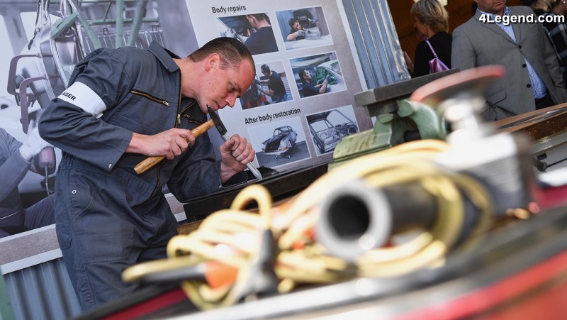 À l’occasion de l’anniversaire du festival de voitures de course, Porsche Classic a également présenté deux modèles spéciaux pour les visiteurs : une 911 F avec laquelle les visiteurs ont pu suivre l’entretien de la carrosserie à travers des étapes de réparation présentées individuellement et découvrir ainsi l’artisanat incroyablement précis et détaillé impliqué dans une restauration.