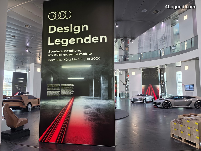 Audi propose du 28 mars au 12 juillet 2026 une nouvelle exposition spéciale au sein du musée Audi à Ingolstadt, mettant en valeur des concept cars dont certains sont emblématiques et des modèles en argile. L’exposition « Design Legenden » (légendes du design) compte 13 véhicules dont certains exposés pour la première fois au grand public.