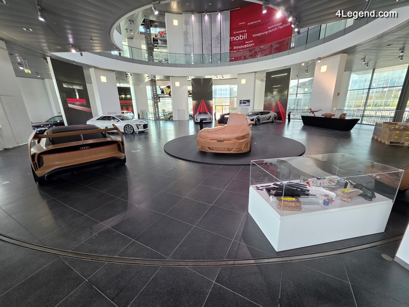 Au-delà des véhicules eux-mêmes, l’exposition présente également des pièces issues de l’atelier de modélisation d’Audi, offrant un aperçu du processus créatif.