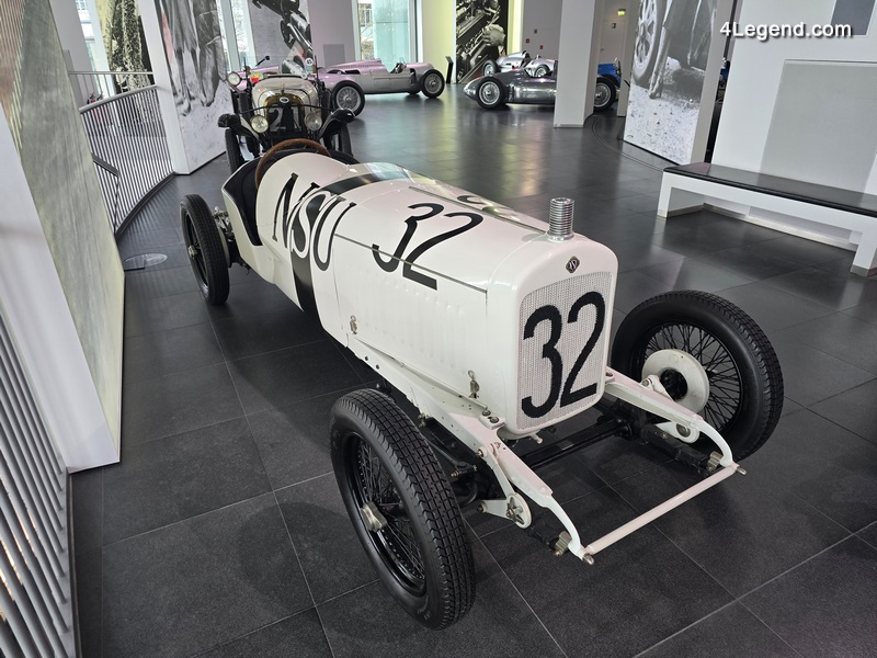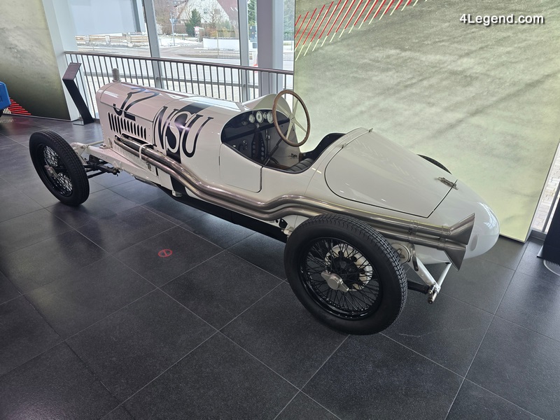 La NSU 6/60 PS, issue de la collection de véhicules historiques d’AUDI AG, est l’une des pièces maîtresses de l’exposition. Ce premier modèle six cylindres, produit à Neckarsulm, développe 60 ch, pèse 830 kg et atteint une vitesse de pointe de 175 km/h. Il y a près de cent ans, le 11 juillet 1926, NSU célébrait une quadruple victoire mémorable dans la catégorie 1,5 litre lors du premier Grand Prix d’Allemagne sur le circuit AVUS, avec sa monoplace entièrement blanche.