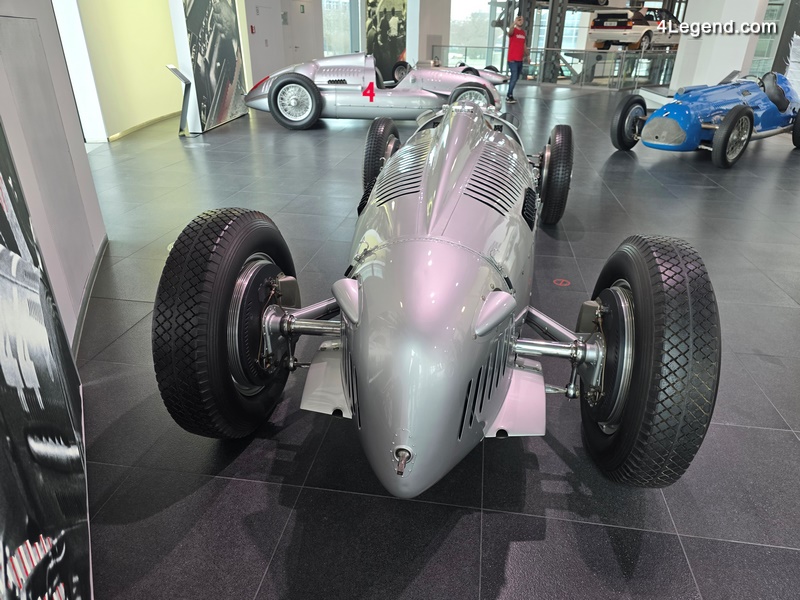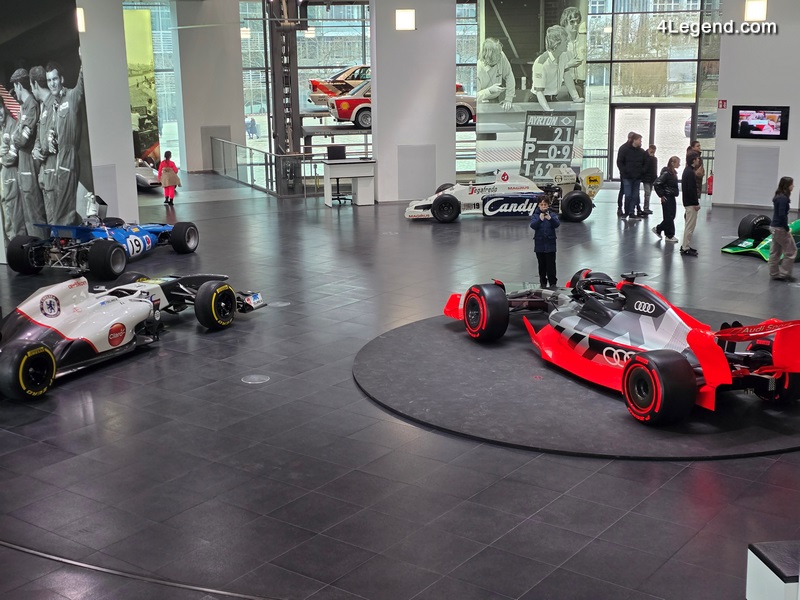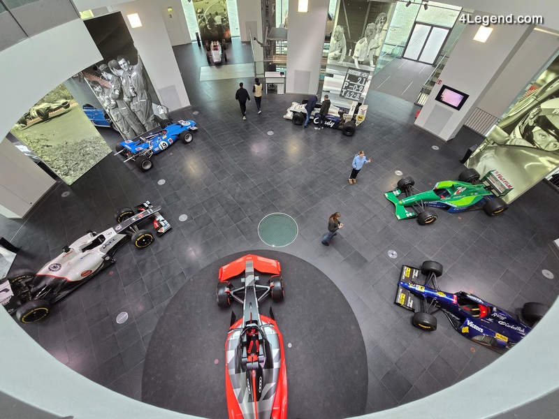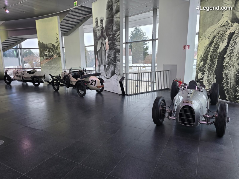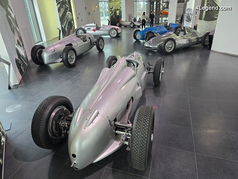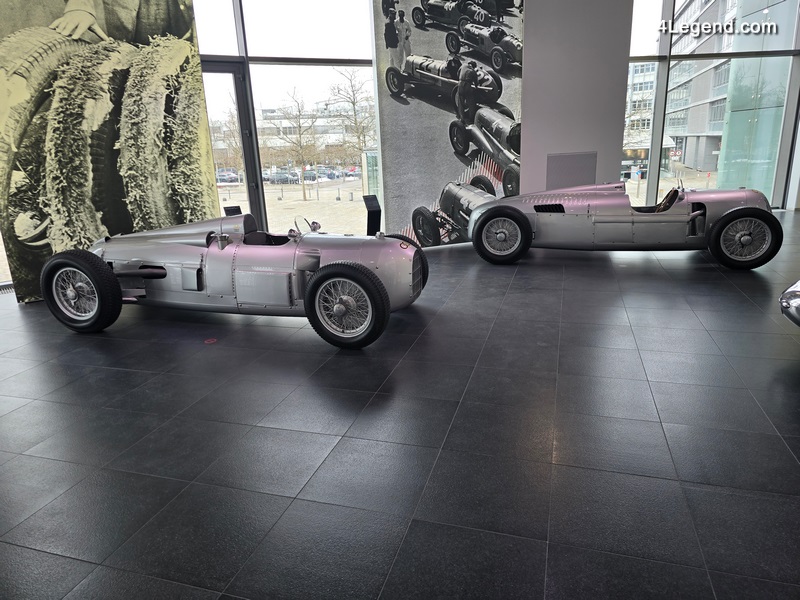 Parmi les autres véhicules exposés figurent une Wanderer W8 de 1928 ; les voitures de Grand Prix Auto Union Type A, Type C et Type D des années 1930 ; une Cisitalia 360 de 1947 ; une Toleman-Hart TG184 de 1984, pilotée notamment par Ayrton Senna ; et une Jordan 191 de 1991, avec laquelle Michael Schumacher a disputé son premier Grand Prix de Formule 1.