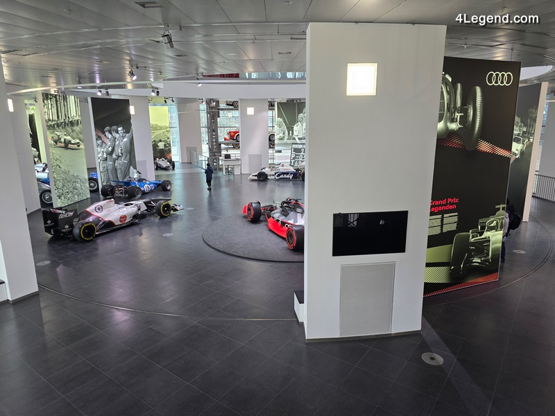 L’exposition à l’Audi museum mobile retrace d’abord les débuts des Grands Prix, puis l’ère des Flèches d’Argent d’Auto Union et les 75 ans d’histoire de la Formule 1, des premières monoplaces d’après-guerre à nos jours.