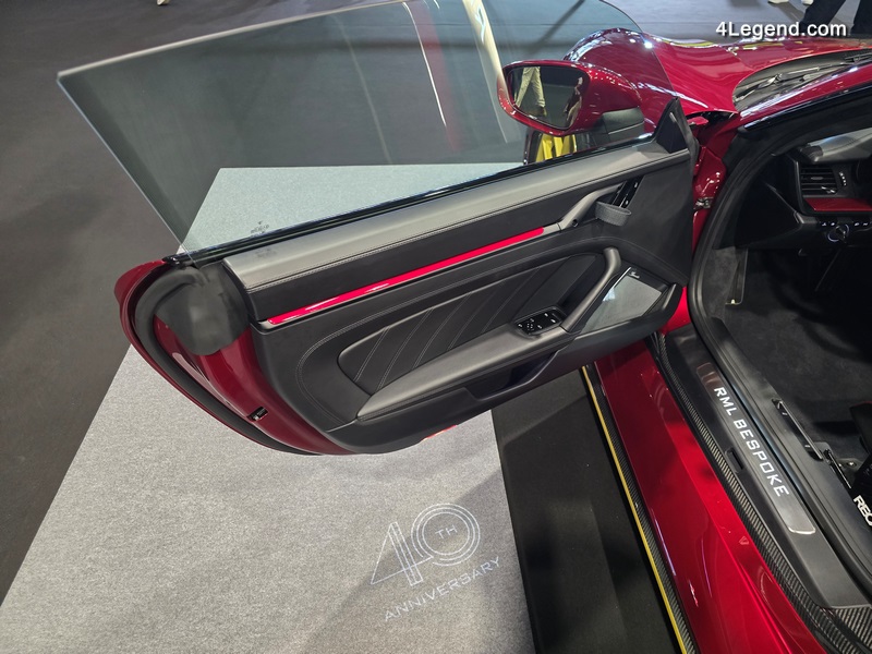 Dennis Stendorph, de MY GARAGE, explique : « La réalisation de cette commande a été une véritable expérience de collaboration. Nous avons été inspirés par la profondeur du Rouge Rubis 40e Anniversaire, mais nous souhaitions y ajouter la signature distinctive de MY GARAGE. Nous avons travaillé en étroite collaboration avec l’équipe RML pour intégrer des touches dorées sur les jantes et les liserés. L’or étant un élément clé de l’identité visuelle de MY GARAGE, cet ajout associe visuellement notre marque à la superbe finition rouge de la voiture. Le résultat est une configuration qui met parfaitement en valeur les lignes de la voiture tout en célébrant notre partenariat. »
