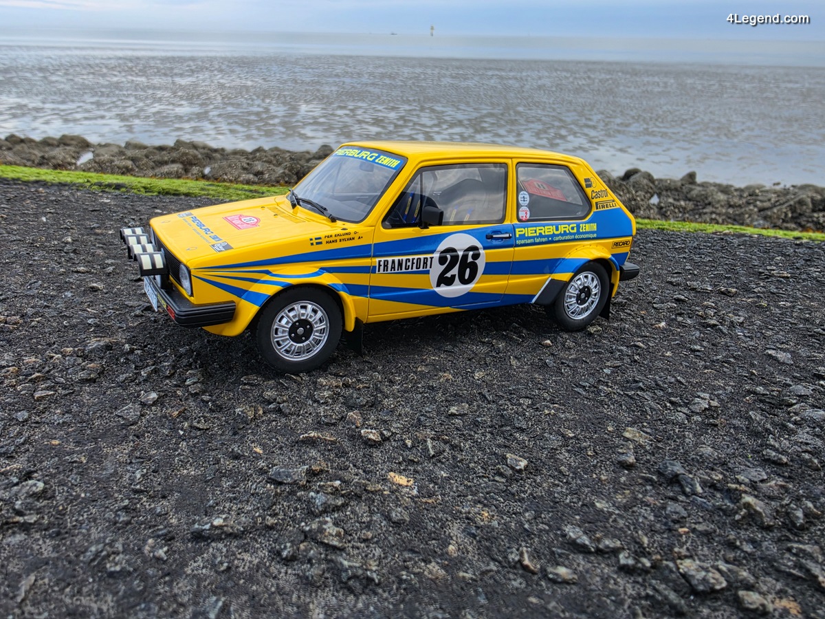 Ottomobile, le fabricant breton de miniatures en résine à l’échelle 1:18, a proposé fin 2025 un modèle ayant participé au rallye Monte-Carlo 1980 : la VW Golf GTI Mk1 Groupe 2 « Pierburg » #26 pilotée par Per Eklund et engagée par Volkswagen Motorsport. Découverte de cette belle reproduction haute en couleurs tout en haut des Pays Bas, face à la Mer du Nord à l’extrémité du port de Eemshaven.