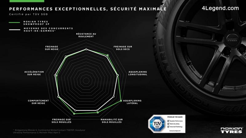 Le pneu Snowproof 3P de Nokian Tyres a obtenu le label Premium TÜV SÜD Tire Mark, qui certifie son excellence et atteste qu’il se compare favorablement à ses concurrents (Bridgestone Blizzak 6, Continental WinterContact TS870P, Goodyear UltraGrip Performance 3, Michelin Pilot Alpin 5) en termes de qualité et de performances. Le fait de répondre aux normes de référence exigeantes de TÜV SÜD confirme que le Snowproof 3P se classe parmi les meilleurs de sa catégorie. Cette vérification externe complète les tests internes approfondis réalisés par Nokian Tyres et fournit une preuve transparente et indépendante de la qualité et de la fiabilité du pneu.