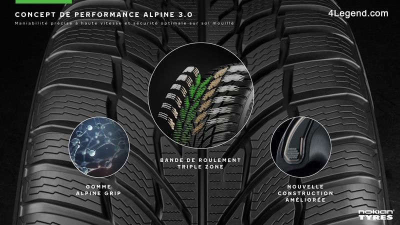 Le pneu Nokian Tyres Snowproof 3P offre des performances élevées sur les routes enneigées et mouillées. Son concept Alpine Performance Concept 3.0 renforce l’adhérence grâce à une bande de roulement à trois zones : une zone arctique avec des lamelles 3D conçues pour la sécurité sur la neige, une zone aquatique avec des rainures en forme de lames qui aident à prévenir l’aquaplaning, et une zone de performance avec une géométrie optimisée qui épouse chaque virage.