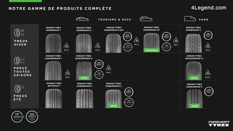 Ce nouveau pneu est le dernier produit phare de Nokian Tyres destiné aux consommateurs d’Europe centrale et méridionale : Nokian Tyres Snowproof 3P pour les pneus hiver, Nokian Tyres Seasonproof 2 pour les pneus toutes saisons et Nokian Tyres Powerproof 2 pour les pneus été.