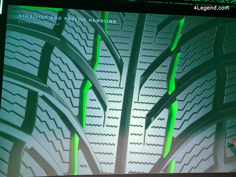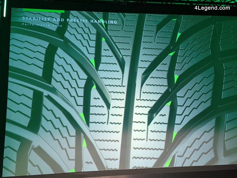 La zone Aqua aide le pneu à résister à l’aquaplaning tout en améliorant les performances de freinage sur sol mouillé. Sa conception à rainures en lame augmente le volume des rainures du pneu pour offrir un meilleur contact sur les routes mouillées.
